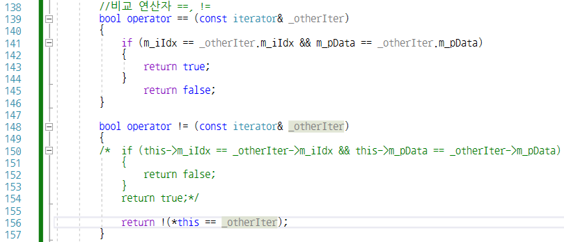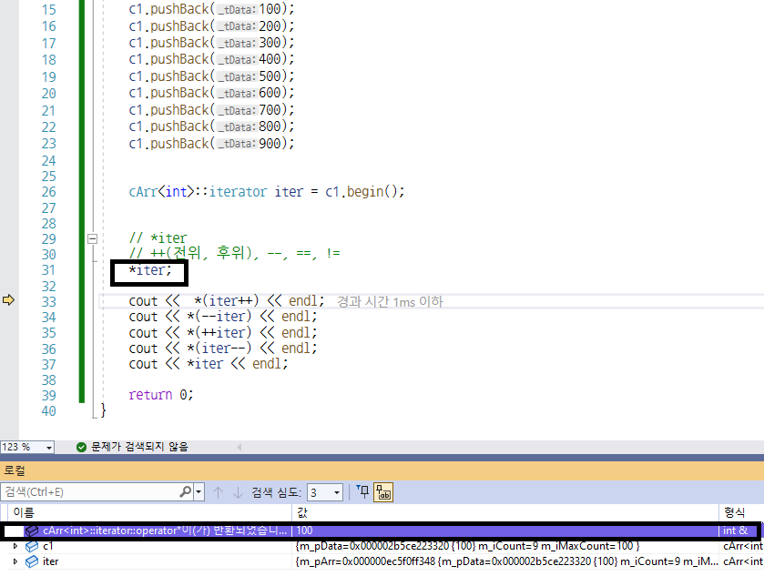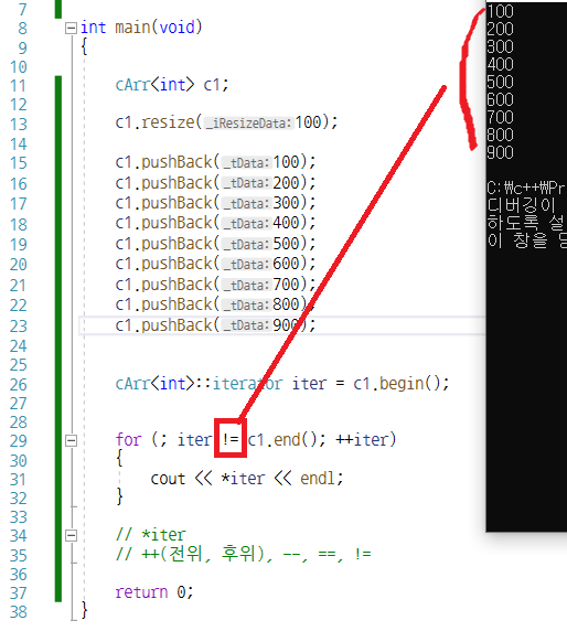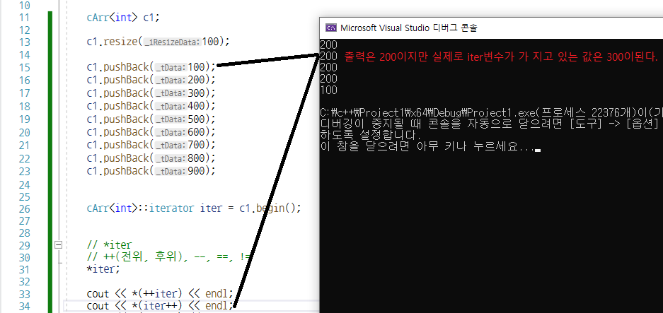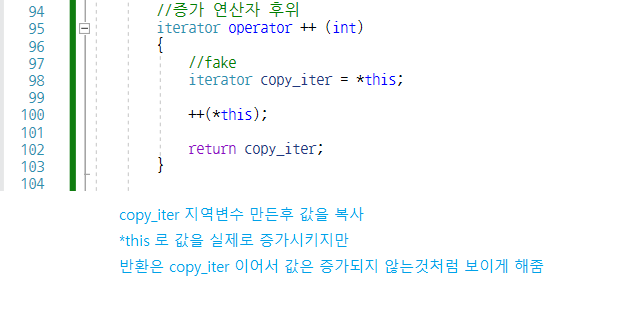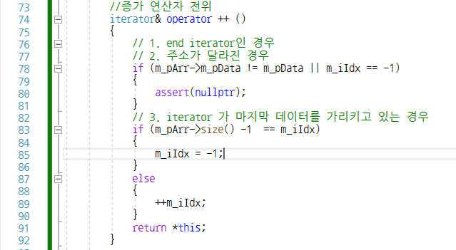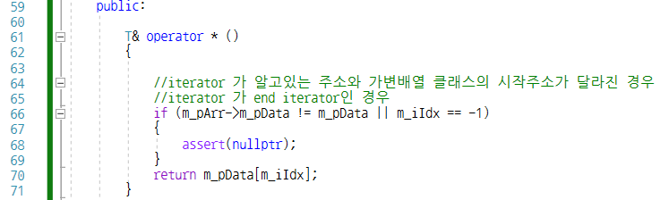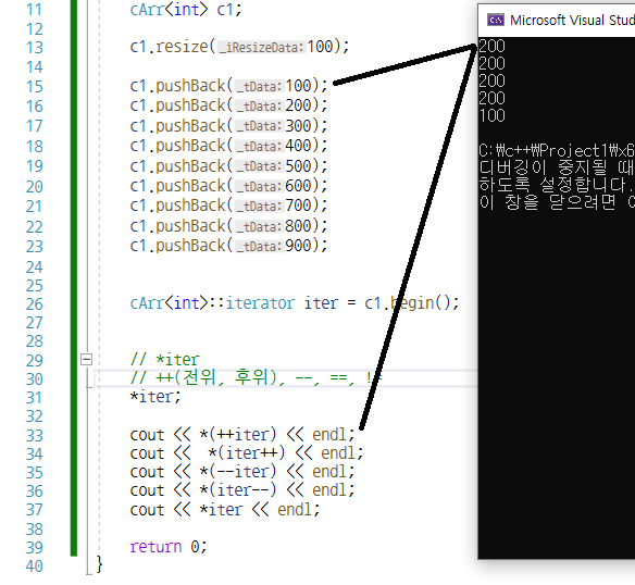 iterator 클래스를 통해서 연산자 오버로딩 *(역참조), ++, ==, != 구현해보기