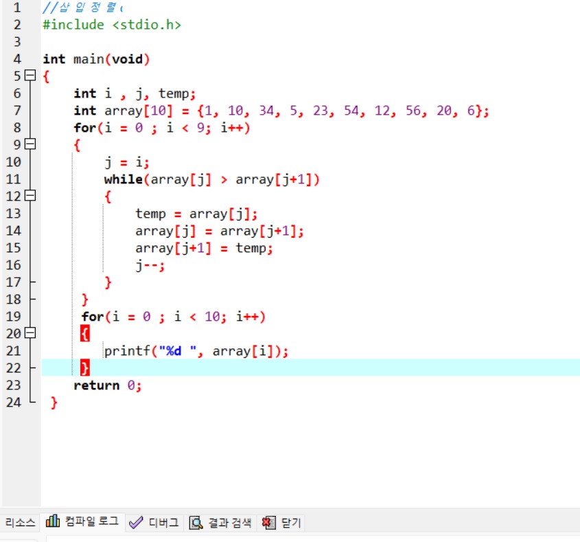 '다른정렬 방식들은 무조건 위치를 바꾸는 방식이었다면 삽입정렬은 필요할때만 위치를 바꿈'