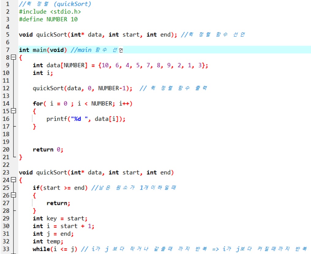 - 배열 가장 왼쪽 원소를 고른다. 이렇게 고른 원소를 피벗(pivot) 이라고 한다. (key 값)