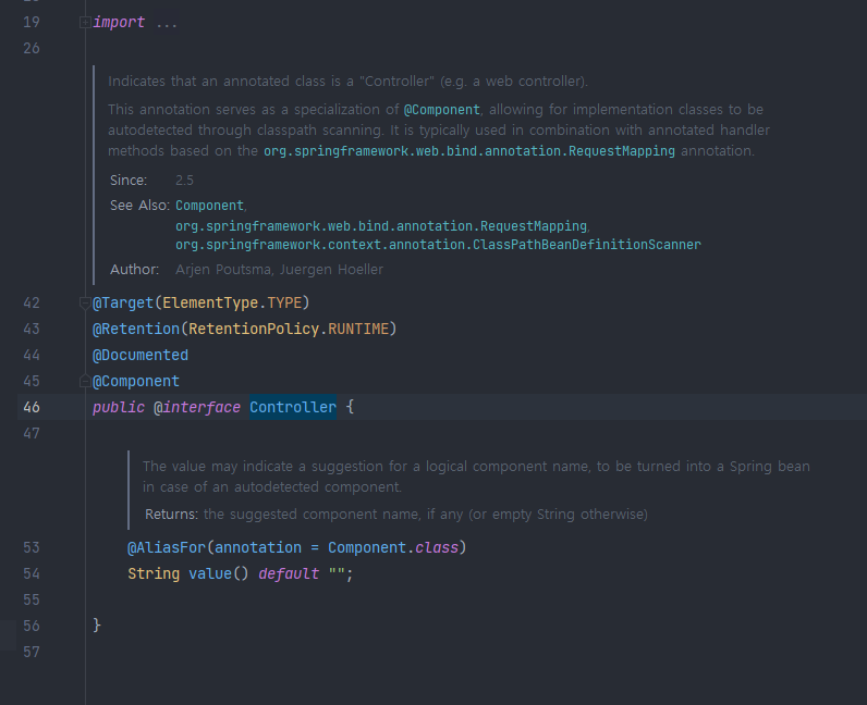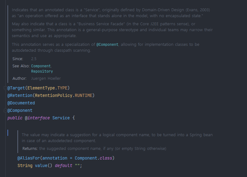 @Service, @Controller, @Repository 등의 어노테이션들도 command 키를 누른 후 클릭해보면
