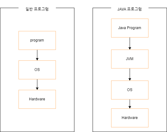 - JAVA가 OS에 구애받지 않고 재사용을 가능하게 해 줌