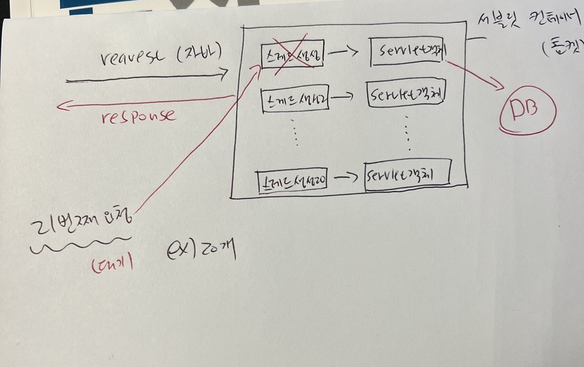 이 서블릿 객체에서 DB 커넥션, 필요한 데이터를 가져오는 등 수많은 작없을 하게된다.