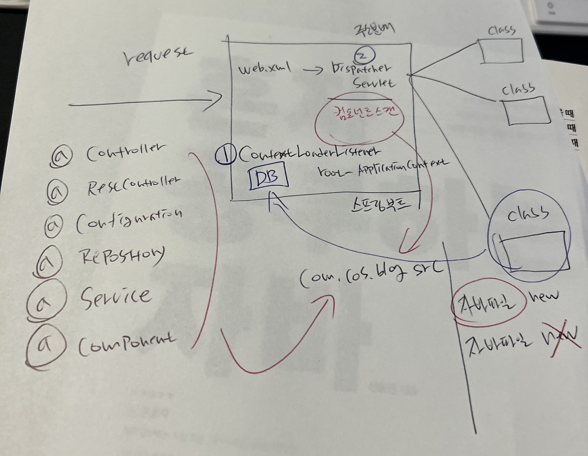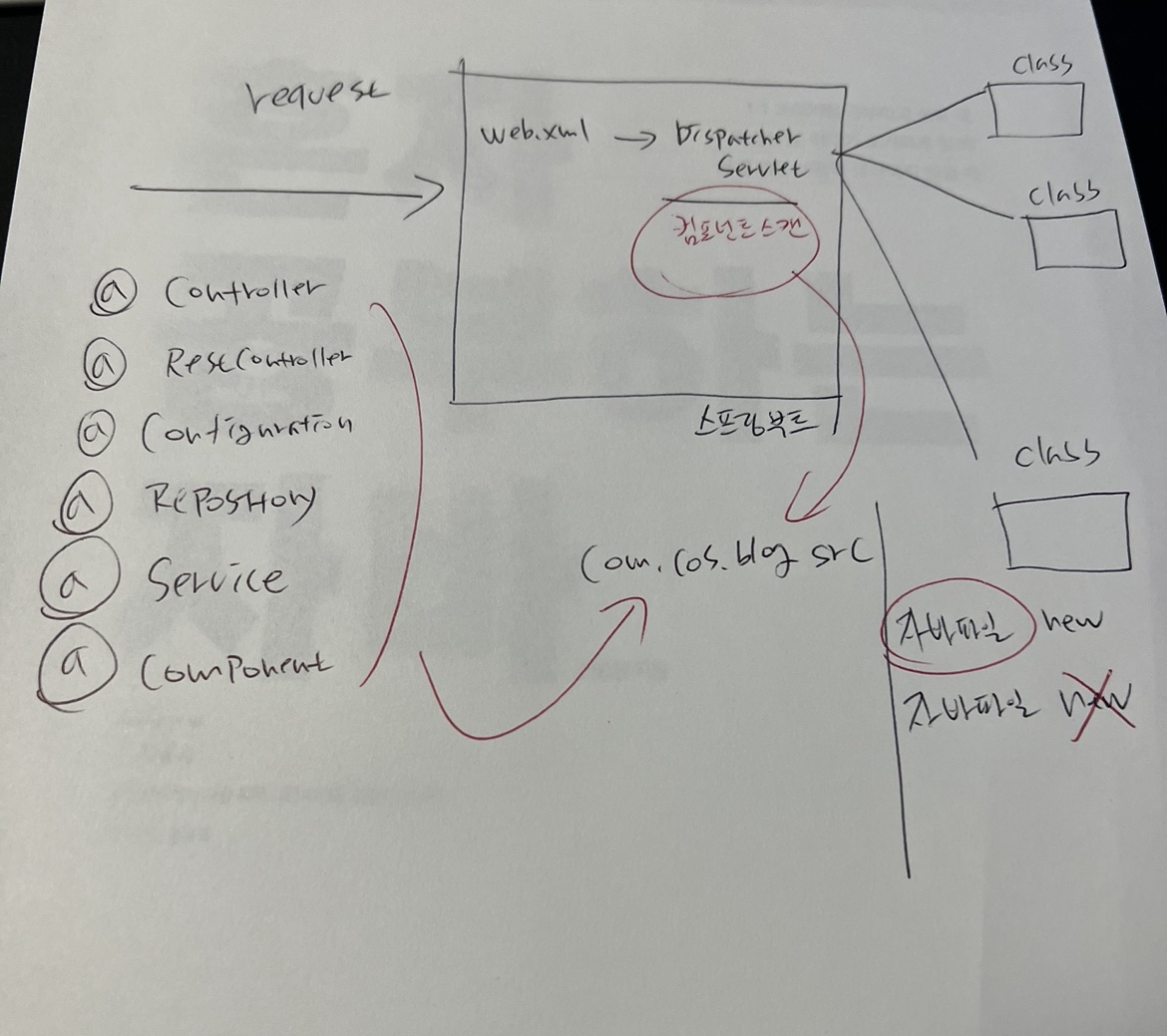 @Controller, @RestController, @Service 등과 같은 어노테이션이 붙은 클래스들은 스프링에 의해 자동으로 메모리에 로딩된다. (IoC)