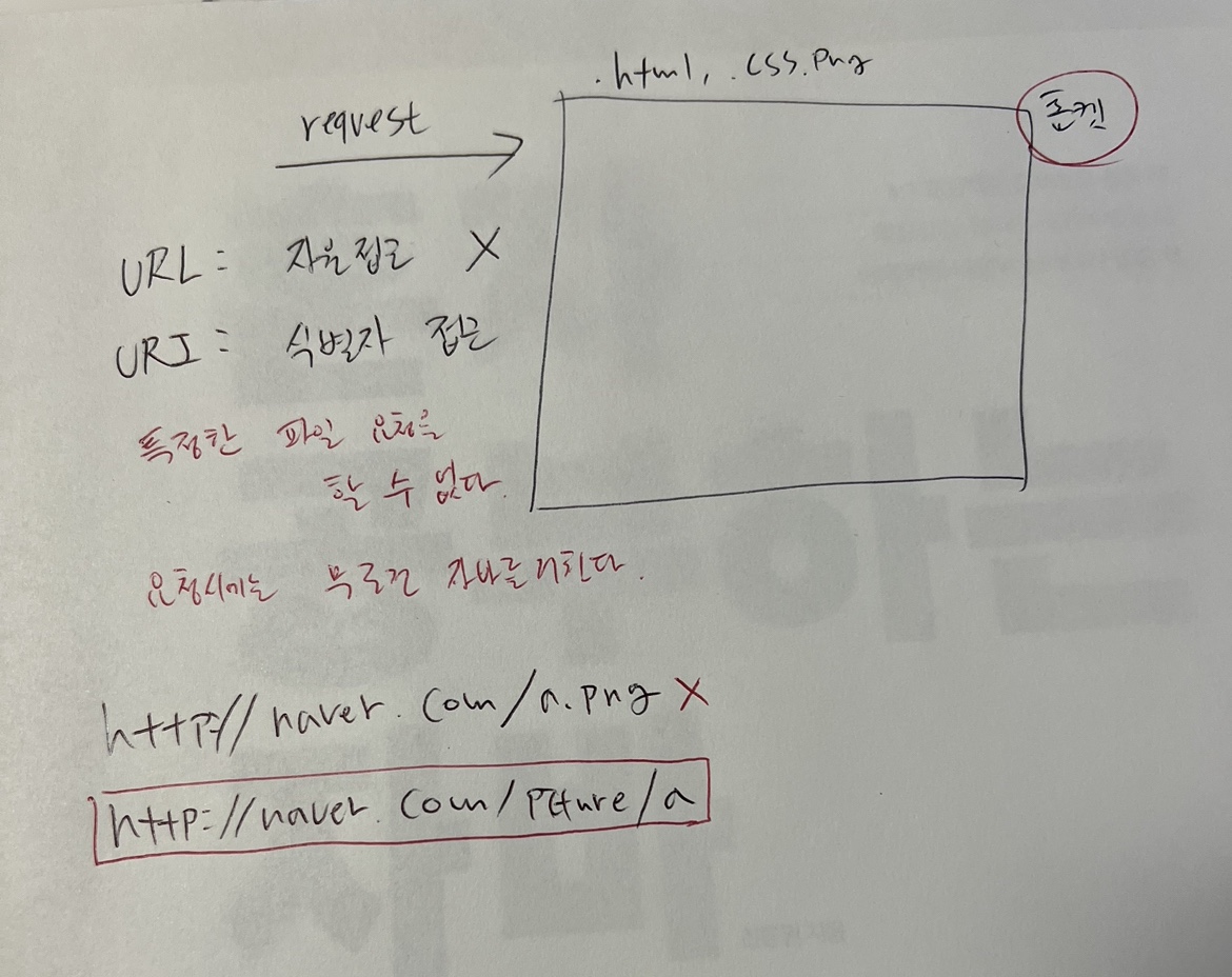 스프링에서는 URL을 통한 접근을 막고 URI를 통한 접근만을 허용한다.