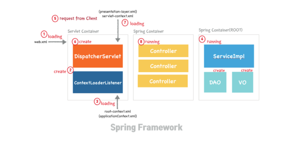 DispatcherServlet에 의해 주소가 분배되면서 새로운 스레드가 계속 생성되는데, 이때 DB Connection과 같이 모든 요청이 공통적으로 사용해야하는 일, 모든 스레드가 공통적으로 사용해도 되는 것들은 ContextLoaderListener에 의해 메모리에 로딩된다. ContextLoaderListener는 root_ApplicationContext라는 파일을 읽는다.