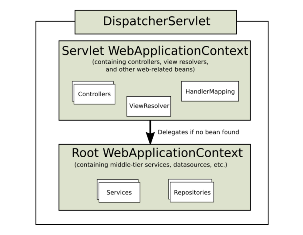 root-ApplicationContext가 servlet-ApplicationContext보다 먼저 메모리에 로딩되기 때문에 , servlet-ApplicationContext에서 root-ApplicationContext가 로드한 객체를 참조할 수 있지만 그 반대는 불가능하다.