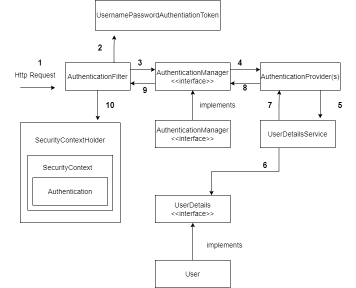 9. AuthenticationFilter는 검증된 인증 객체를 SecurityContextHolder의 SecurityContext에 저장하고 나머지 SecurityFilterChain은 무시하고 SercurityFilterChain을 종료한다.