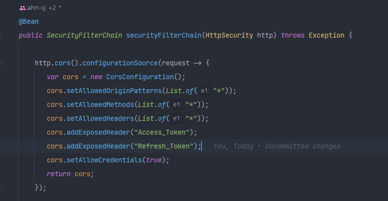 백엔드코드에 SecurityFilterChain에 아래와 같이 코드를 추가해주니깐