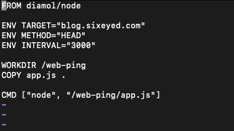 - diamol/node 이미지에는 web-ping 애플리케이션을 실행하는 데 필효한 런타임인 Node.js가 설치돼 있다.