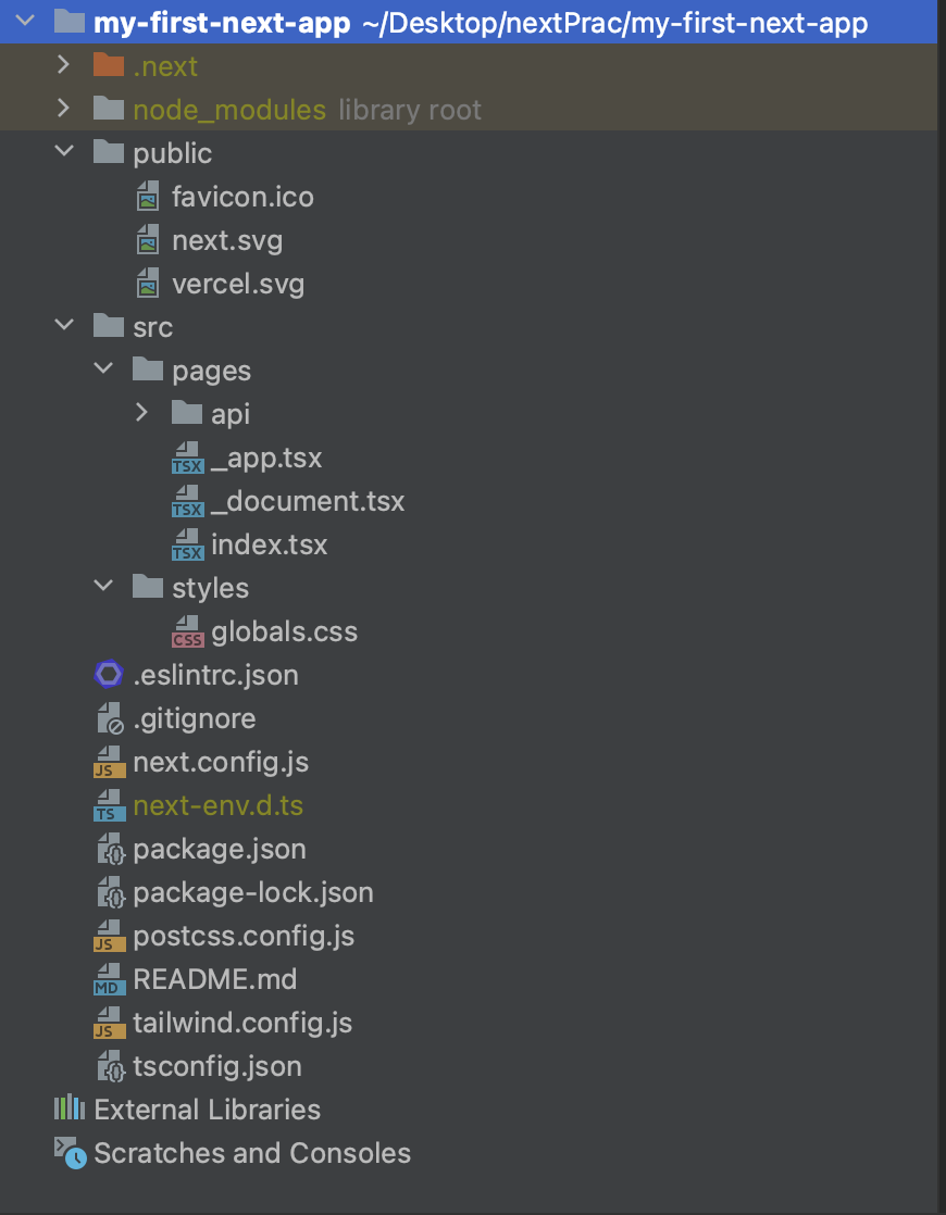 - 반드시 있어야 하고 용도가 정해져 있는 directory(public/, pages/)