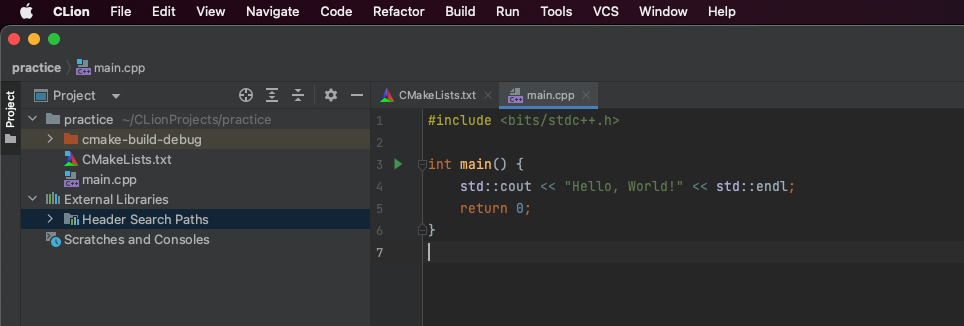 5. cLion 에서 #include <bits/stdc++.h>가 잘 적용된 것을 볼 수 있다.