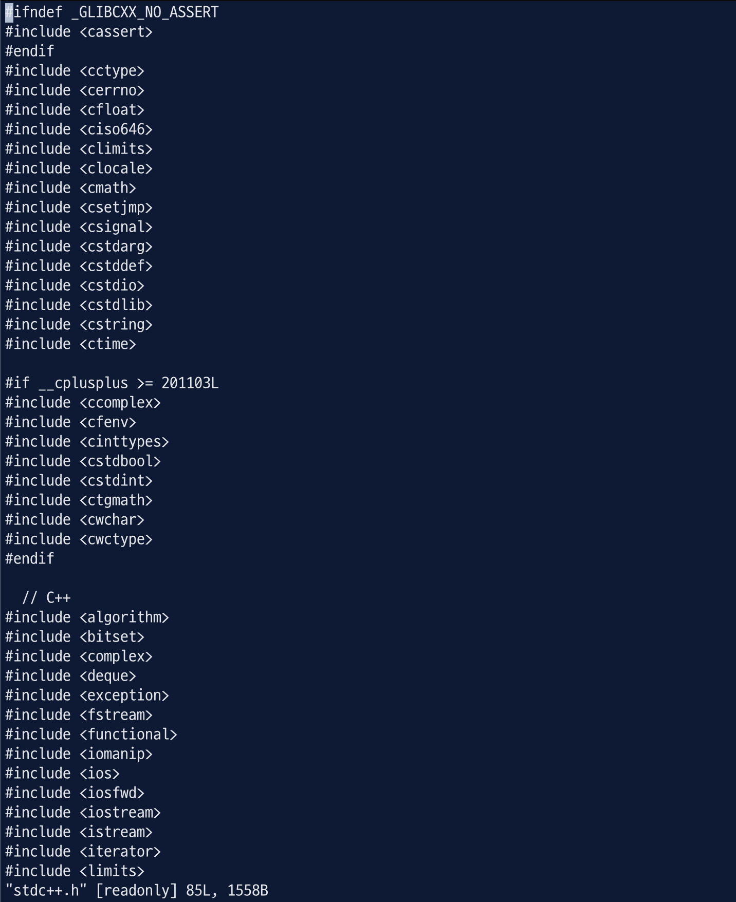 - stdc++.h파일이 존재하는 것은 아니고 vi 편집기를 이용해서 파일을 만들어주는 개념
