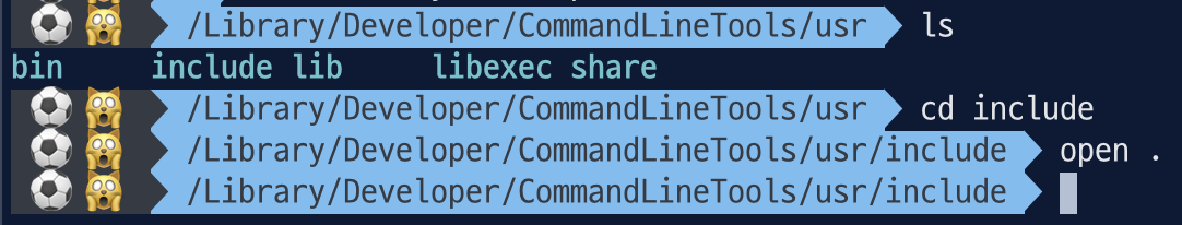 2. cd /Library/Developer/CommandLineTools/usr/ -> include 폴더 열기