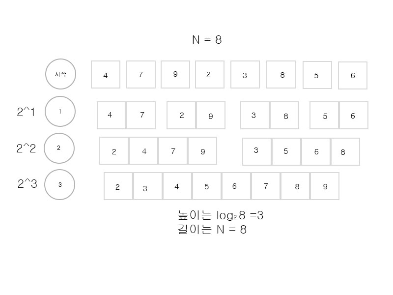 int sorted[8]; //정렬 배열은 반드시 전역 변수로 선언