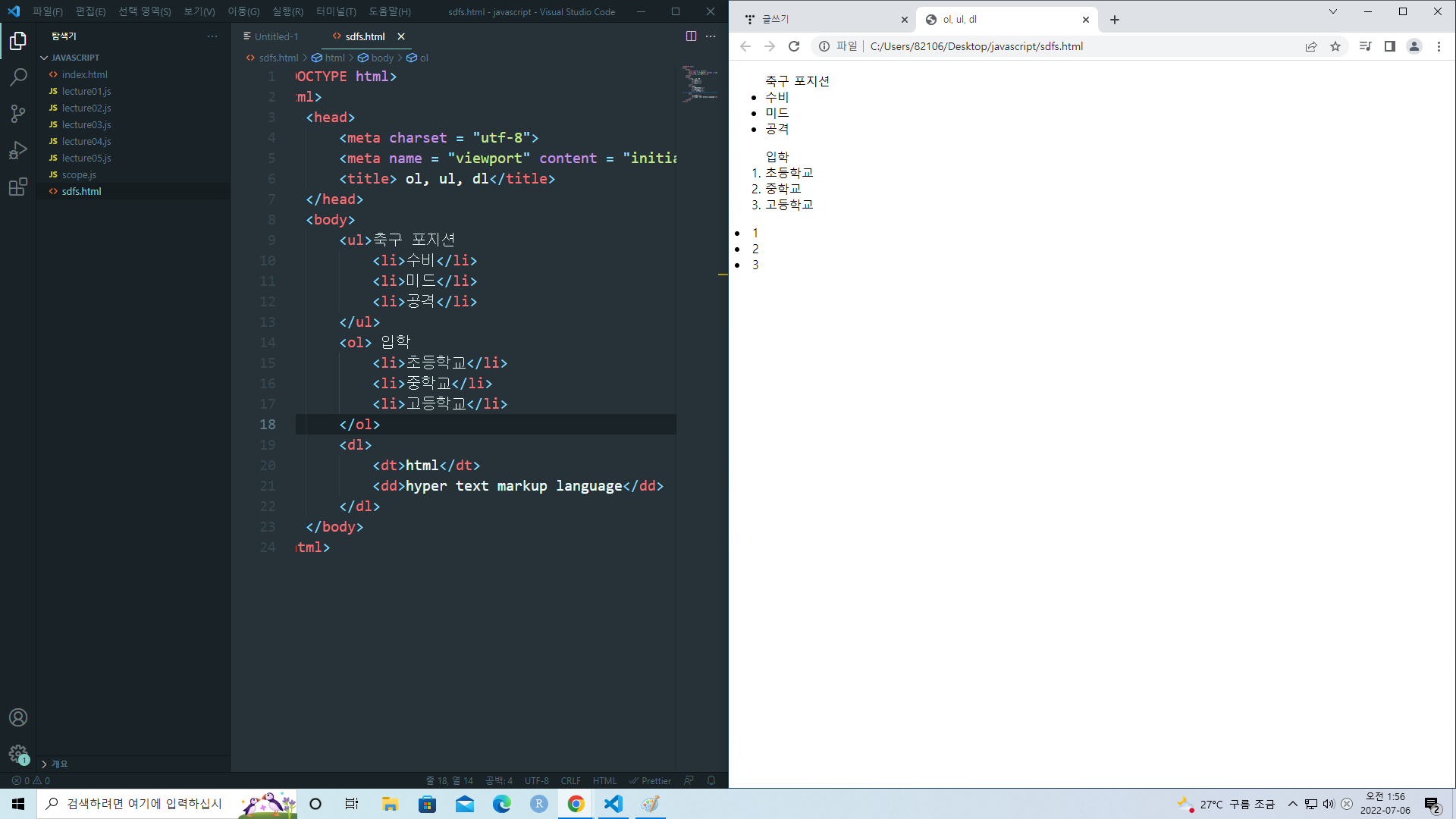 - 태그는 순서가 있는 리스트를 표현할 때 사용한다.