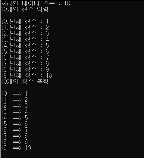 printf("%d ", iPtr[1]); //힙영역에 존재하는 iPtr 두번째 참조값; = *(iPtr+1);