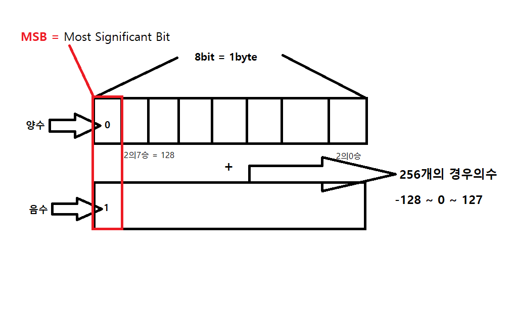 컴퓨터에서 음수는 양수에 더했을때 0이나오는 수로 생각한다.