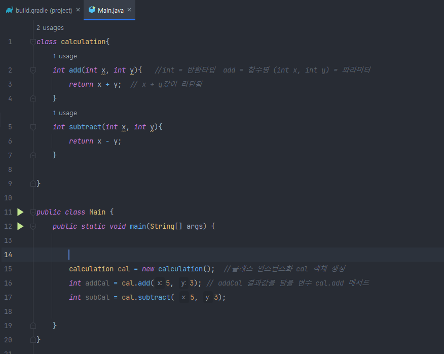 - 기능(Function) : 메서드(method), 행위, 함수(function)