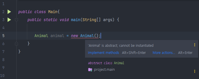 - 상속받는 클래스 없이 그 자체로 인스턴스를 생성할 수 없는 클래스