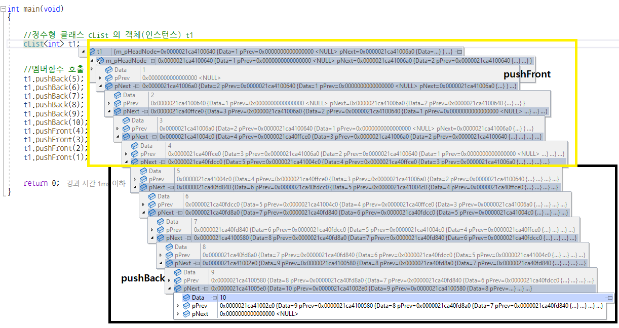 // 기존에 데이터가 있을경우 pushFront이기 때문에